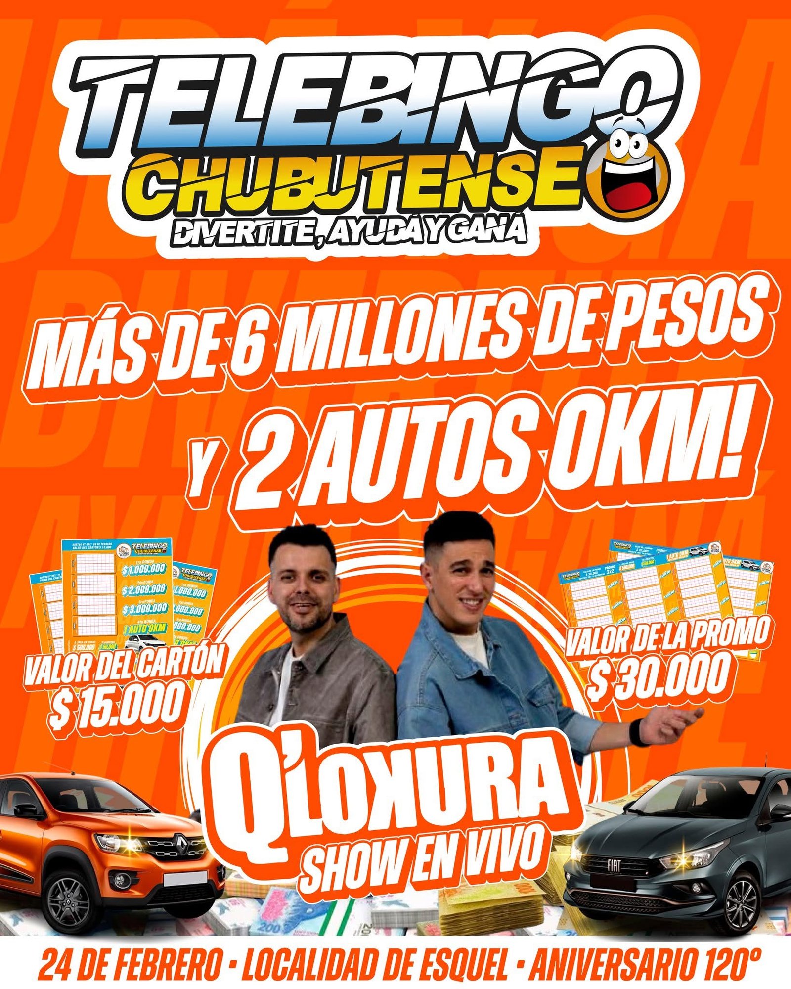 El Telebingo Chubutense llega al 120° aniversario de Esquel con el show de Q’Lokura y grandes premios
