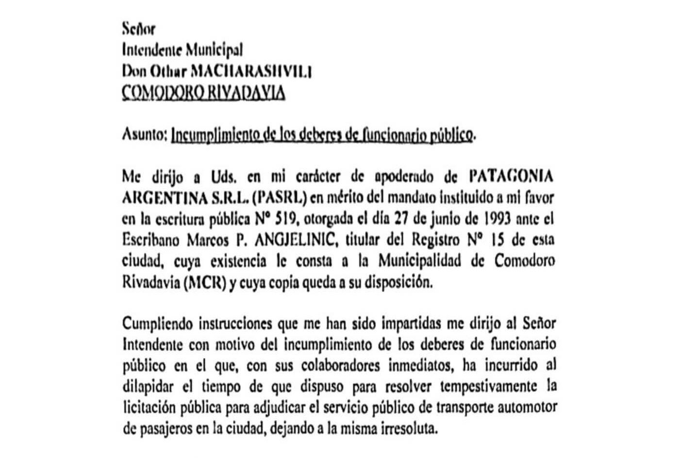 “Ese incumplimiento, por el que usted y sus secretarios y asesores serán denunciados ante el Ministerio Público Fiscal el día lunes primero de diciembre próximo, causará a PASRL y a todo su personal, daños y perjuicios considerables los que le serán reclamados a la municipalidad, y a usted y a todos los funcionarios involucrados a título personal conforme dispone el artículo 69 de la Constitución Provincia, por los que quedan a partir de este momento constituidos en mora", indicaron.