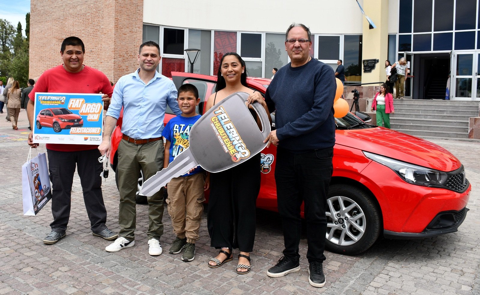 Durante el lanzamiento el presidente de Lotería del Chubut entregó un Fiat Cronos, premio a Bingo del Telebingo realizado en el mes de septiembre en la ciudad de Trelew. La ganadora Silvia Vazquez y su esposo Fernando son trabajadores de salud y junto a su pequeño hijo recibieron las llaves de manos del titular del organismo de juegos.