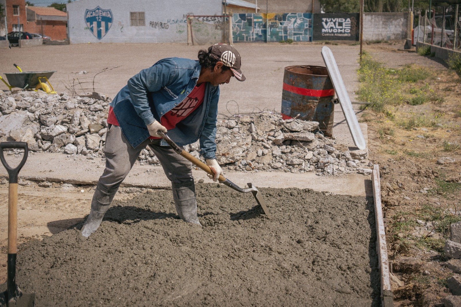 Este viernes, se realizó el hormigonado, y, en los próximos días, se iniciará la reparación del alambre romboidal perimetral. Posteriormente, se llevará a cabo la demarcación y pintado de la cancha, la colocación de arcos y el acondicionamiento de las paredes aledañas, dejando el playón en condiciones óptimas para el uso de la comunidad.
