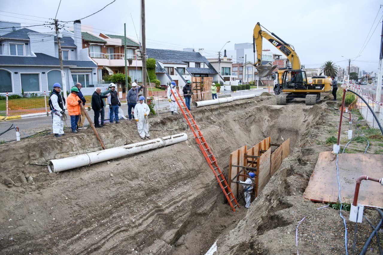En este sector de la ciudad, con la napa a muy poco profundidad y la presencia de arena por la proximidad al mar, llevar adelante una obra de estas características suponía un desafío tanto en lo técnico como económico. El colector está a unos cinco metros y el movimiento de sueldo para este caso, requirió más de 120 viajes de batea para poder avanzar con la instalación de la nueva red. A su vez, hubo que diseñar un plan de trabajo, con estrictas normas de seguridad para reguardar la integridad del personal afectado a la obra.