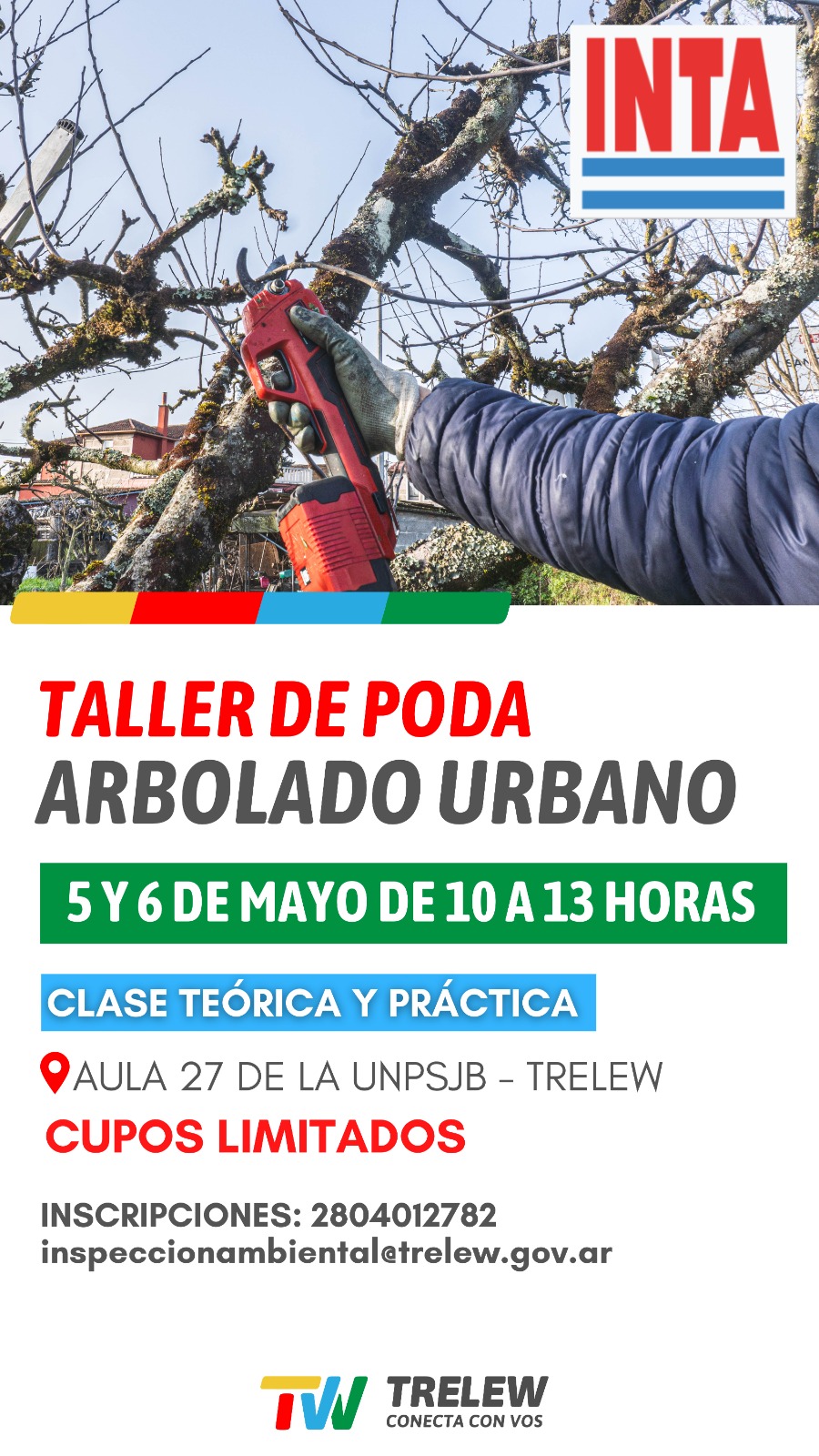 El Municipio de Trelew abre inscripciones para taller de poda de arbolado urbano